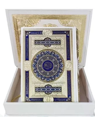 قرآن وزیری گلاسه گالینگور سفید جعبه دار پلاک دار چهارقل 110373